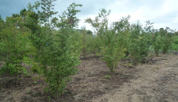 ハナミズキ、クス、ケヤキ等、高木となる苗木を自社圃場で植え育てています。