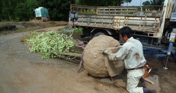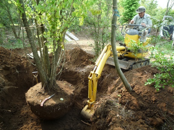 建設作業時などで妨げになる樹木を一旦掘り取り、自社圃場でお預かり。工事終了後に再植樹致します。